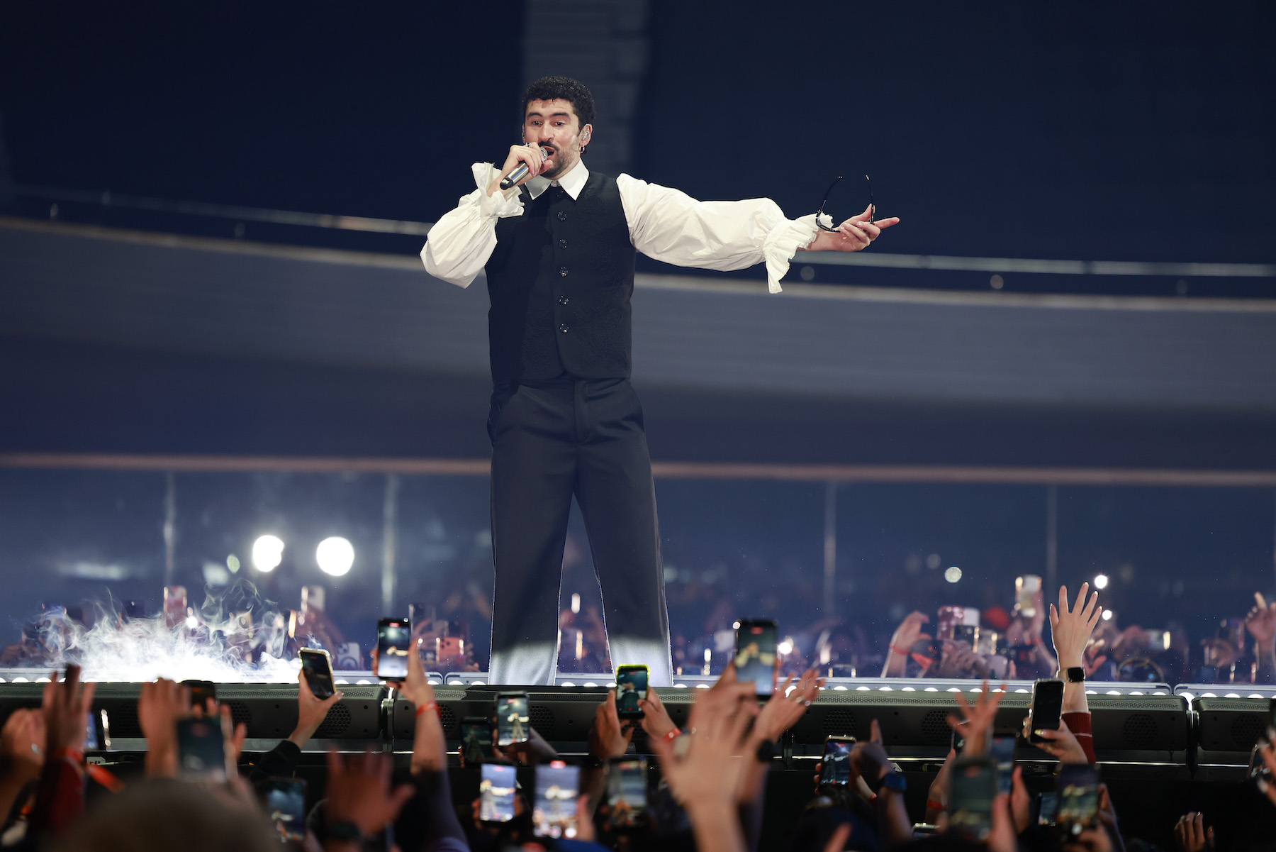 Throughout the show, Benito engaged with his audience, playfully teasing them with questions like "quieres más?" (Do you want more?) and commendations for their unwavering energy. The crowd’s excitement reached a fever pitch when the opening chords of his mega-hit "Tití Me Preguntó" began, only to be abruptly cut short, prompting a collective roar of anticipation. When the song finally launched into full swing, purple lights enveloped the cherry blossom trees, while a dynamic interplay of orange and blue lights danced over the fervent crowd, creating a mesmerizing visual backdrop to the sonic landscape. Bad Bunny, clad initially in a stylish white shirt with wide cuffs reminiscent of a poet’s blouse, a vest, and matching pants, moved with fluid grace across the stage’s short catwalk. Later, he swapped his vest for a jacket emblazoned with the Japanese characters for "Tokyo" (東京) on the back, a clear nod of appreciation to his host city and a further bridging of cultural worlds.