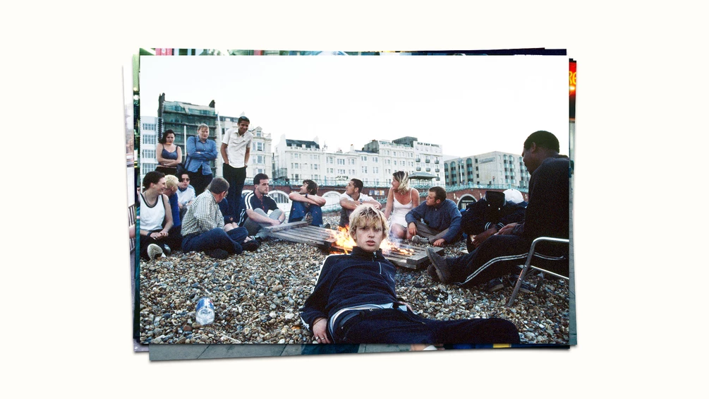 The collection also moves south to the coast, where Brighton’s beaches became a natural extension of the dancefloor. In 1998, the arches beneath the promenade were home to a thriving club scene, and when the lights came up, the crowd simply migrated to the pebbles. Haller’s shots of the Brighton beach are among the most iconic in the book, featuring large groups huddled around small fires in the early morning chill. One particularly resonant image features a young man sitting prominently at the front of a group, possessing an air of quiet defiance and ownership over the space. It is an image of youth at its most untethered—free from the constraints of work, responsibility, and the surveillance of the modern age.